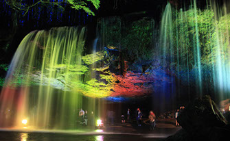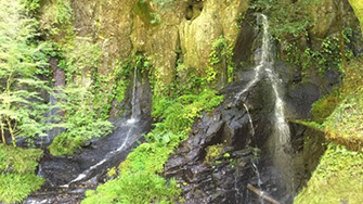 遊歩道を20分程川上に歩くと、高さ約15mのカッパ滝があります。夏は水量が多く、とても涼しい場所です。秋の紅葉時期の晴れた日には、綺麗な虹を見ることができます。