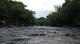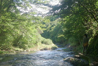 とても流れの穏やかな川で、上流には滝もあり、とても癒されます。夏には川遊びをする家族連れが多く、とてもにぎわいます。