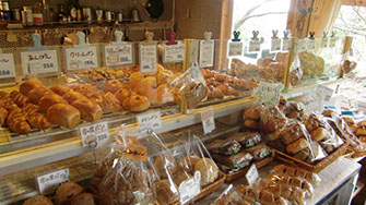毎日約20種類もの焼きたてパンがずらりと並ぶ。ジャージー牛乳はもちろん、自家製カスタードや自家製ベーコンを使うなど、素材選びにこだわりあり。