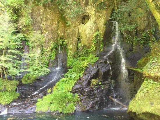 遊歩道を20分程川上に歩くと、高さ約15mのカッパ滝があります。夏は水量が多く、とても涼しい場所です。秋の紅葉時期の晴れた日には、綺麗な虹を見ることができます。