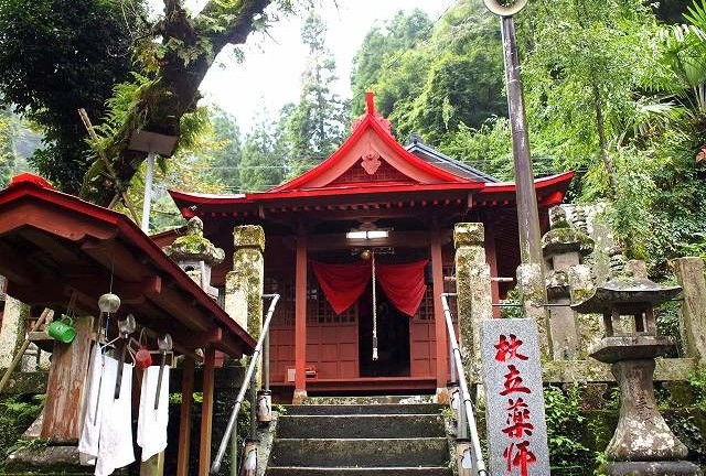 400年ほど前に建てられたお堂で、先祖代々「お湯の守護神」として親しまれています。薬のつぼを持った薬師如来仏が祀られており、病気や悩み、苦しみから救ってくれるといわれています。
