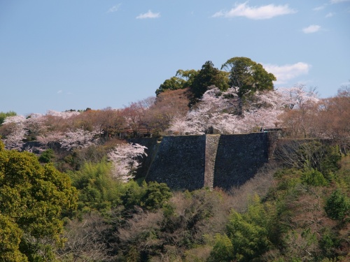 標高325mの高さにそびえ立つ堅城。文禄3年(1594)に豊臣秀吉の命でこの地にはいった岡藩初代藩主中川秀成(なかがわひでしげ)が石垣づくりのお城にしました。現在も石垣補修や環境整備のため有料となっています。