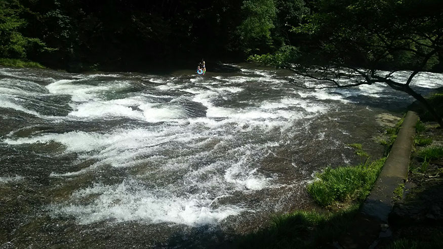 とても流れの穏やかな川で、上流には滝もあり、とても癒されます。夏には川遊びをする家族連れが多く、とてもにぎわいます。