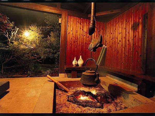 温泉棟へとつづく小路を抜けると、男性専用露天風呂と貸切風呂がございます。やや青みを帯びた湯と白く濁った湯の2つの源泉がそのままに注がれているため湯量も豊富で、開放感ある露天風呂では、自然と一体化した中でゆっくりと温泉をお楽しみいただけます。