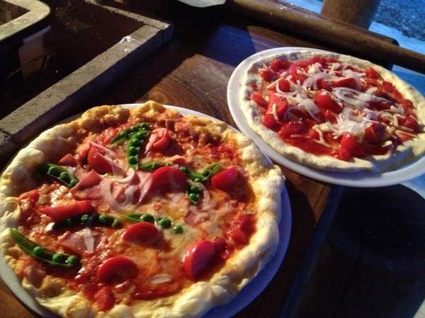 野菜はすべて地元産、お宿ならではのしっかり本格派のメニューが並ぶ。座敷もあるので、小さな子どもと一緒でも安心してくつろげる。
